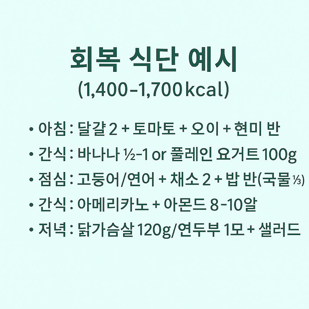 3) “오늘 뭐 먹지?” 회복용 식단 예시 (칼로리 가이드)