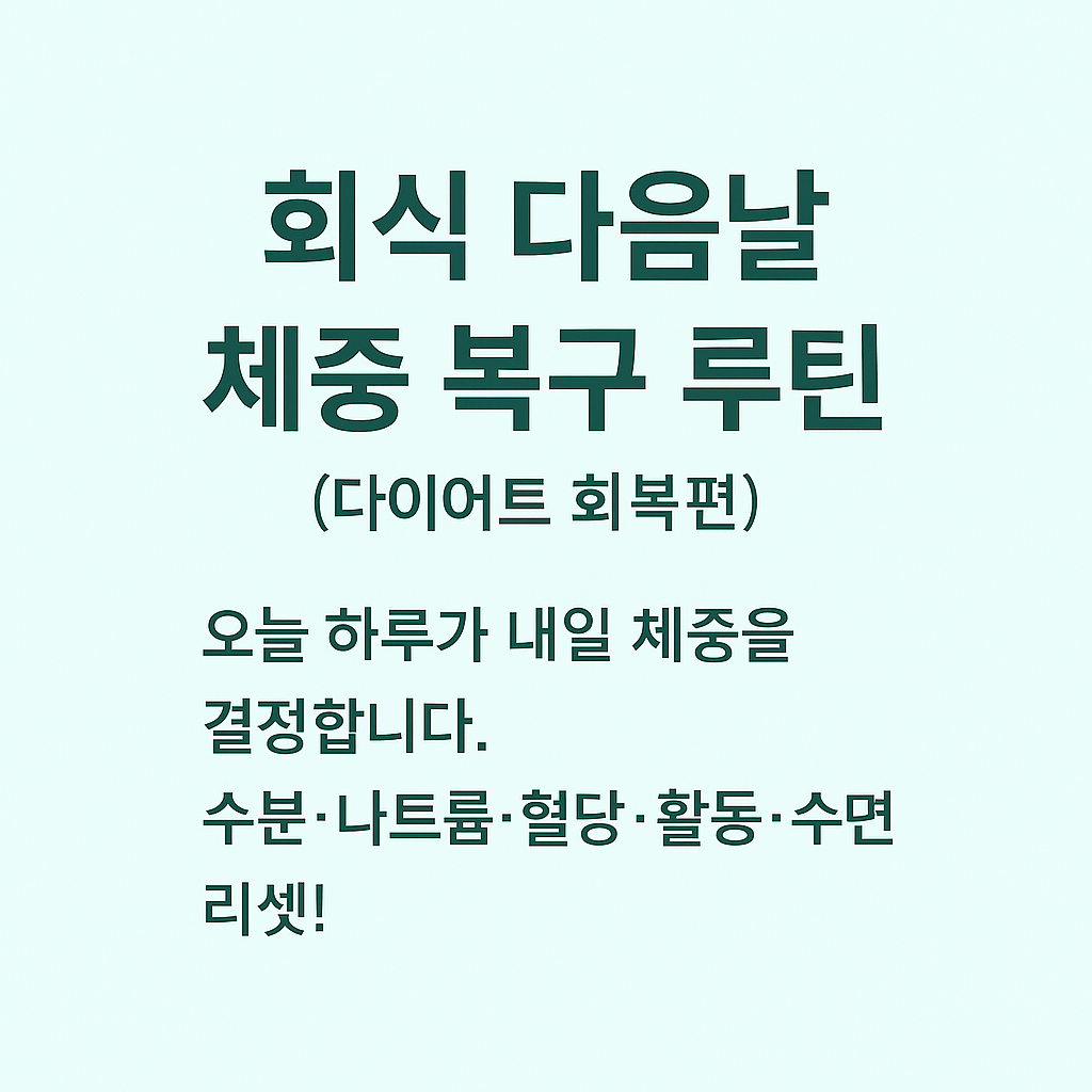 아래 루틴은 40대 중년 다이어트에 맞춘 1일 복구 플랜입니다. 과학적으로 납득되는 원칙(수분·나트륨·혈당·활동량·수면)을 기준으로 “바로 실행 가능한 방법”만 담았습니다.