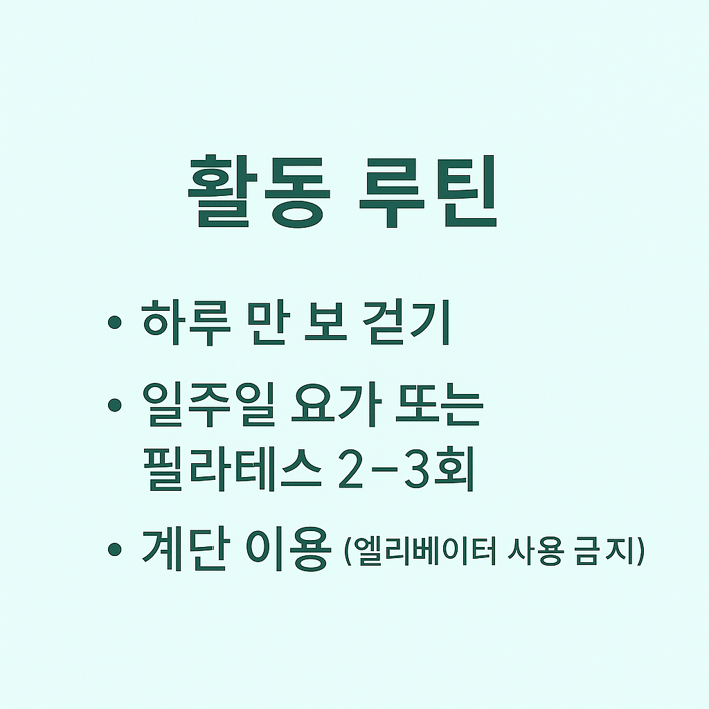 4) 활동(운동) 루틴: 고강도 NO, 저강도+총량 YES