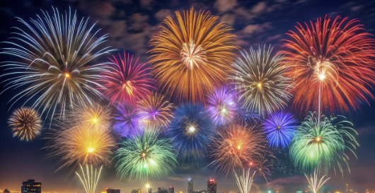 형형색색의 불꽃이 음악과 함께 터지며 하늘을 수놓는 장면은